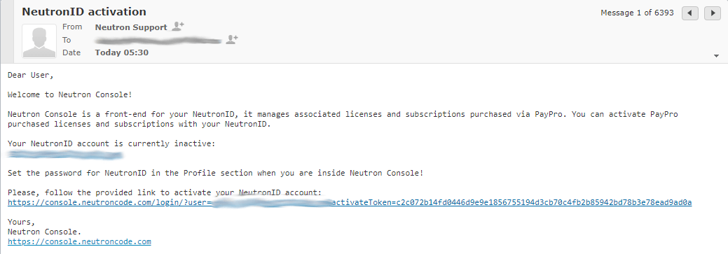 7. Activation e-mail will contain the activation link → click it (or copy-paste to the web-browser) → Neutron Console will be opened in the web-browser → re-confirm password which you earlier entered for NeutronID inside Neutron (if you enter different password then re-enter the same password inside Neutron app):
