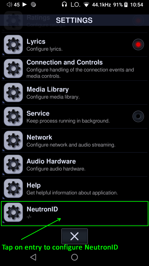 3. Tap on NeutronID entry to enter inside the NeutronID group of settings.